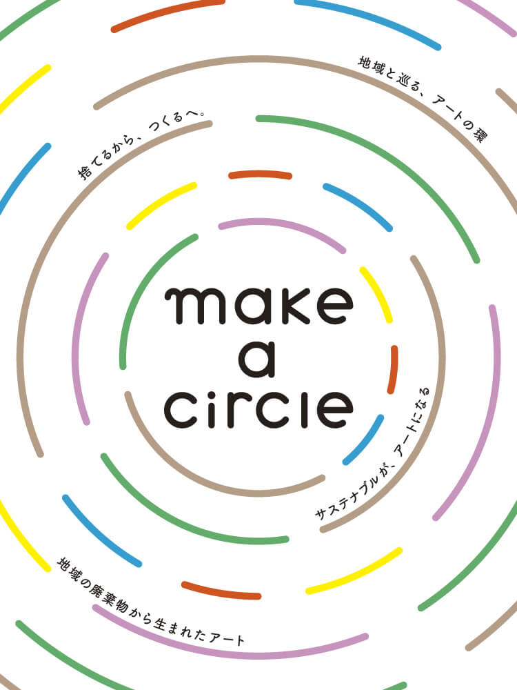 今回、わたしたちは、SDGsの目標12「つくる責任 つかう責任」に焦点を当て、全国11地域20施設で「Make a circle!」をコンセンプトに、地域の産業や工芸などから発生する、本来であれば捨てられるはずの素材から生まれたアートの展示を行います。